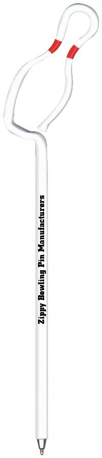 Bowling Pin Pen. Our "Standard Size" MC Multi Color Sports fun shaped novelty pen is a full sized promotional ballpoint ink pen bent into the shape of a Bowling Pin. This Bowling Ball Pin promotional shaped novelty fun pen is available in multi color as shown and includes a personalized custom barrel imprint. Includes a matching cap. Bowling Pin Pens Promotional products are intended for use by adults and are not suitable for children under the age of 12. Products are not intended for use by children or pets. Small parts, they may present a choking hazard to children under 3 years of age.