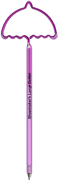 Lampshade Pen - Our "Standard Size" fun shaped novelty pen is a full sized promotional ballpoint ink pen bent into one of our hundreds of available shapes. Lampshade Pens This promotional shaped pen is available in a variety of opaque and transparent colors and includes a personalized custom barrel imprint. Includes a matching cap. Promotional products are intended for use by adults and are not suitable for children under the age of 12. Products are not intended for use by children or pets. Small parts, they may present a choking hazard to children under 3 years of age. Popular Search Terms>> Lampshade Pen , Lampshade Shaped Pen, Lampshade Shaped Pens