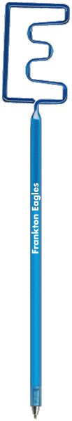 Letter E Shaped Pen Our "Standard Size" fun shaped novelty alphabet pen is a full sized promotional ballpoint ink pen bent into one of our hundreds of available shapes. This promotional shaped pen is available in a variety of opaque and transparent colors and includes a personalized custom barrel imprint. Includes a matching cap. Letter E Shaped Pens Promotional products are intended for use by adults and are not suitable for children under the age of 12. Products are not intended for use by children or pets. Small parts, they may present a choking hazard to children under 3 years of age.