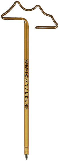 Mountain Pen - Our "Standard Size" fun shaped novelty pen is a full sized promotional ballpoint ink pen bent into one of our hundreds of available shapes. Mountain Pens This promotional shaped pen is available in a variety of opaque and transparent colors and includes a personalized custom barrel imprint. Includes a matching cap. Promotional products are intended for use by adults and are not suitable for children under the age of 12. Products are not intended for use by children or pets. Small parts, they may present a choking hazard to children under 3 years of age. Popular Search Terms>> Mountain Pen , Mountain Shaped Pen, Mountain Shaped Pens