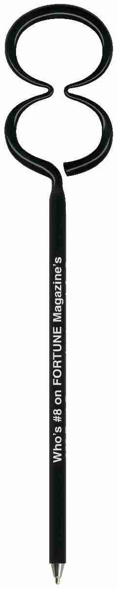 Number 8 Pen - Use this 8th numerical Pen to count for eighth place. Numeral eight when counting. Our "Standard Size" fun shaped novelty pen is a full sized promotional ballpoint ink pen bent into one of our hundreds of available shapes. Number 8 Pens This promotional shaped pen is available in a variety of opaque and transparent colors and includes a personalized custom barrel imprint. Includes a matching cap. Promotional products are intended for use by adults and are not suitable for children under the age of 12. Products are not intended for use by children or pets. Small parts, they may present a choking hazard to children under 3 years of age. Popular Search Terms>> Numerical Pen , Number 8 Pen, Number 8 Pens