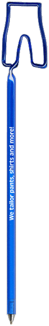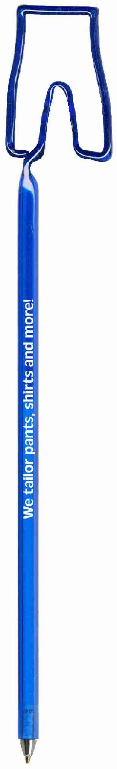 Pants Pen - Our "Standard Size" fun shaped novelty pen is a full sized promotional ballpoint ink pen bent into one of our hundreds of available shapes. Pants Pens This promotional shaped pen is available in a variety of opaque and transparent colors and includes a personalized custom barrel imprint. Includes a matching cap. Promotional products are intended for use by adults and are not suitable for children under the age of 12. Products are not intended for use by children or pets. Small parts, they may present a choking hazard to children under 3 years of age. Popular Search Terms>> Pants Pen , Pants Shaped Pen , Pants Shaped Pens