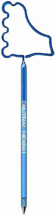 Rollerblades Pen.  Our "Standard Size" Skate fun shaped novelty pen is a full sized promotional ballpoint ink pen bent into one of our hundreds of available shapes. This promotional shaped pen is available in a variety of opaque and transparent colors and includes a personalized custom barrel imprint. Includes a matching cap.  Rollerblade Pens  Promotional products are intended for use by adults and are not suitable for children under the age of 12. Products are not intended for use by children or pets. Small parts, they may present a choking hazard to children under 3 years of age.