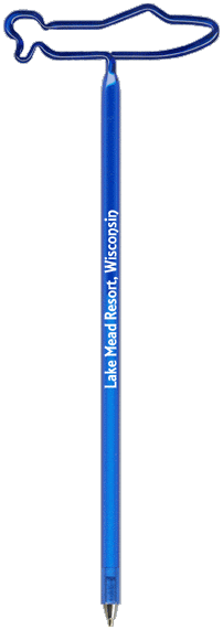 Ski Boat Pen. Our "Standard Size" fun shaped novelty pen is a full sized promotional ballpoint ink pen bent into one of our hundreds of available shapes. This promotional shaped item is available in a variety of opaque and transparent colors and includes a personalized custom barrel imprint. Includes a matching cap. Ski Boat Pens Promotional products are intended for use by adults and are not suitable for children under the age of 12. Products are not intended for use by children or pets. Small parts, they may present a choking hazard to children under 3 years of age.