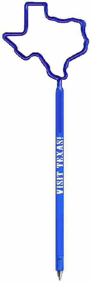 Texas Pen - Our "Standard Size" fun shaped novelty pen is a full sized promotional ballpoint ink pen bent into one of our hundreds of available shapes. Texas Shaped Pens This promotional shaped pen is available in a variety of opaque and transparent colors and includes a personalized custom barrel imprint. Includes a matching cap. Promotional products are intended for use by adults and are not suitable for children under the age of 12. Products are not intended for use by children or pets. Small parts, they may present a choking hazard to children under 3 years of age. Popular Search Terms>> Texas Pen , Texas Shaped Pen, Texas Shaped Pens